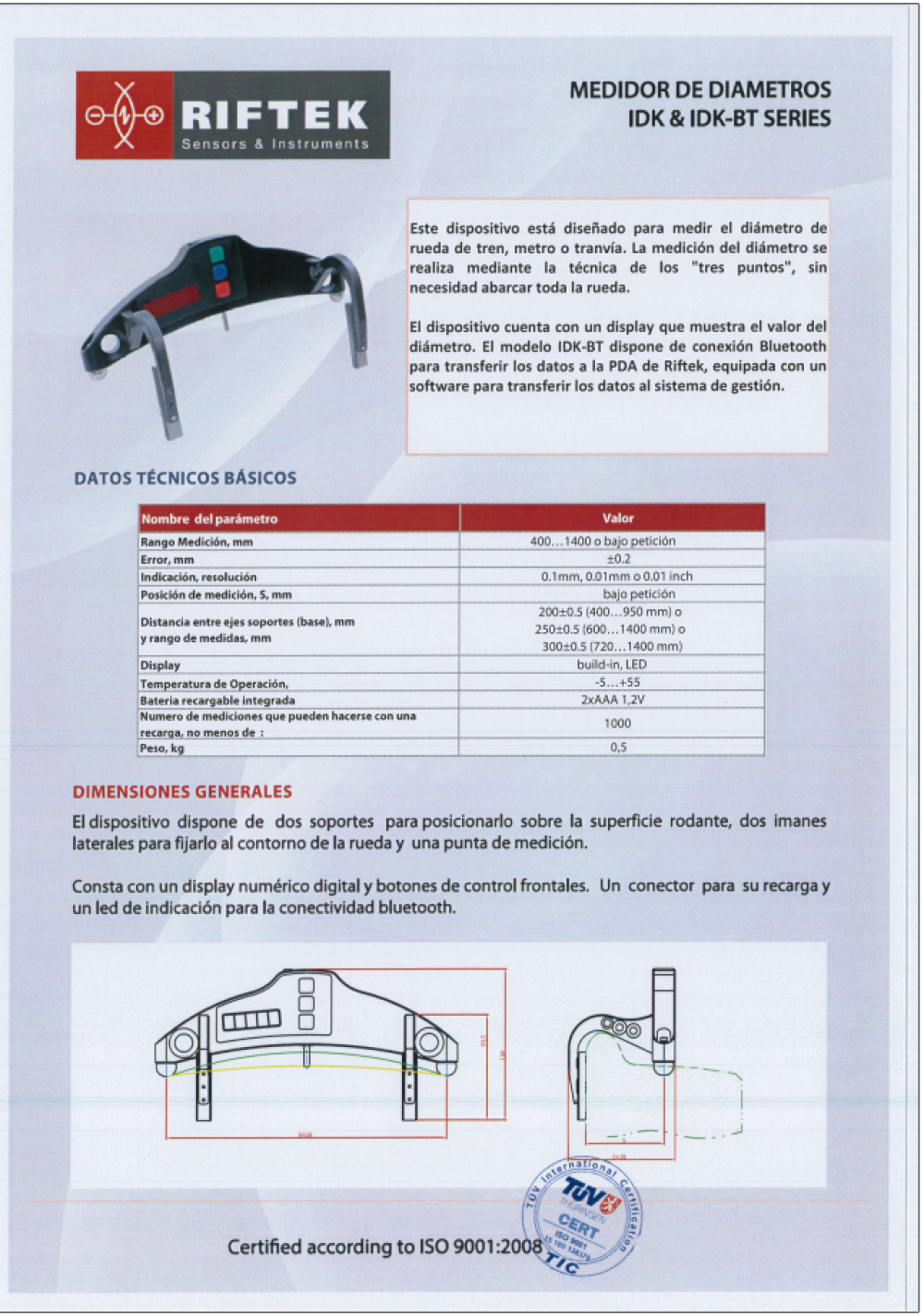 - Medidor de diámetro para rueda de ferrocarril o tranvía.