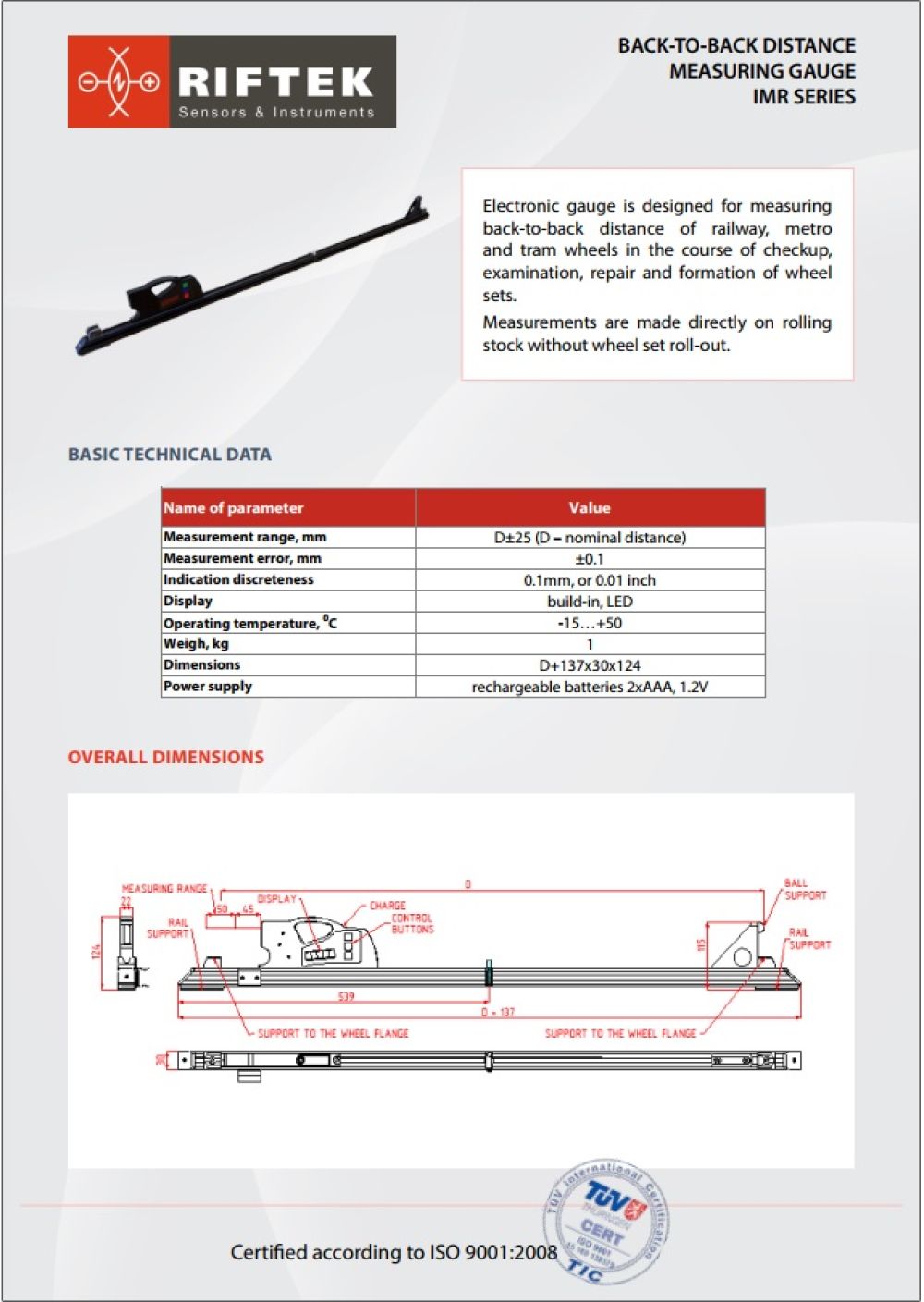 - Medidor de distancia entre caras internas (DCI), para ancho Métrico, Internacional o Ibérico.