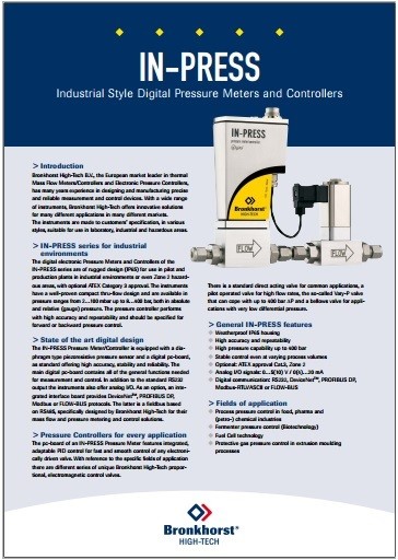 Los controladores y transductores de presión electrónicos digitales de la serie EL-PRESS para gases y líquidos tienen un diseño compacto de flujo pasante bien probado. Los instrumentos incluyen un sensor de presión piezorresistivo de tipo diafragma para medir/controlar la presión.