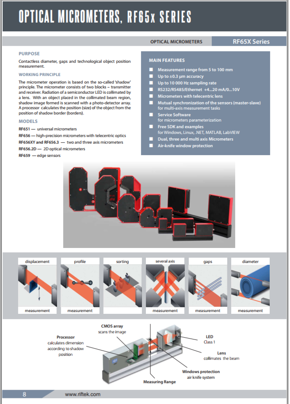 Información técnica de Micrómetros Ópticos, 1D Y 2D