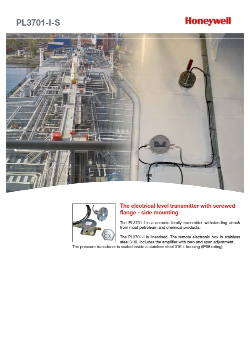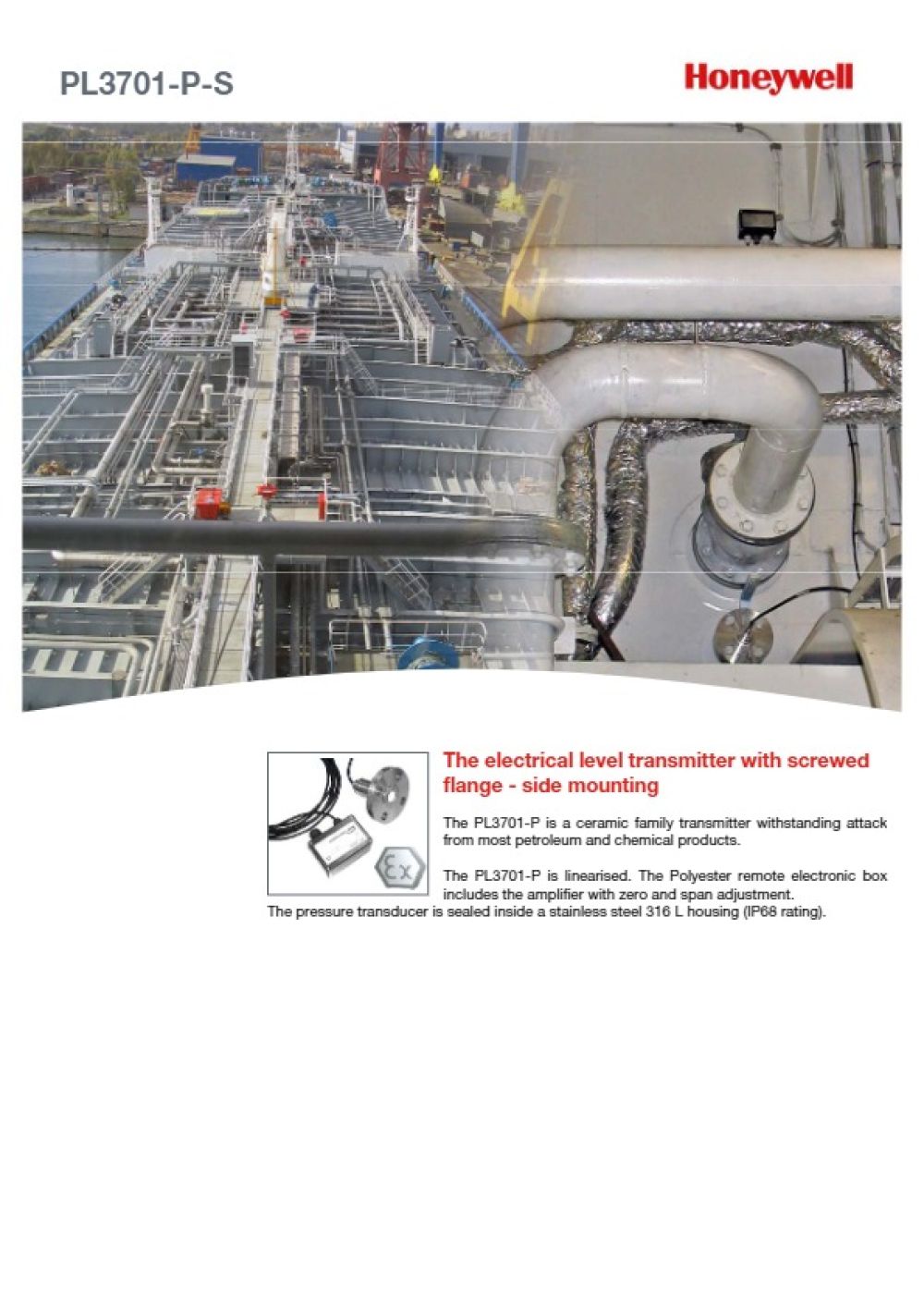 El transmisor de nivel eléctrico PL3700 se utiliza para la medición de nivel en tanques de lastre, aceite, agua dulce, productos químicos… Cubre también la medición de calados, la medición de presión en líneas de carga y la medición de gases inertes. Además, existe un modelo especial capaz de medir la presión atmosférica.